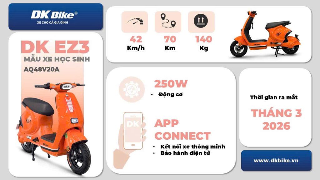 Nếu bạn đang tìm kiếm một mẫu xe điện DKBike dành cho học sinh với thiết kế gọn gàng, vận hành ổn định và nhiều tiện ích thực tế, thì EZ 3 là lựa chọn rất đáng cân nhắc.